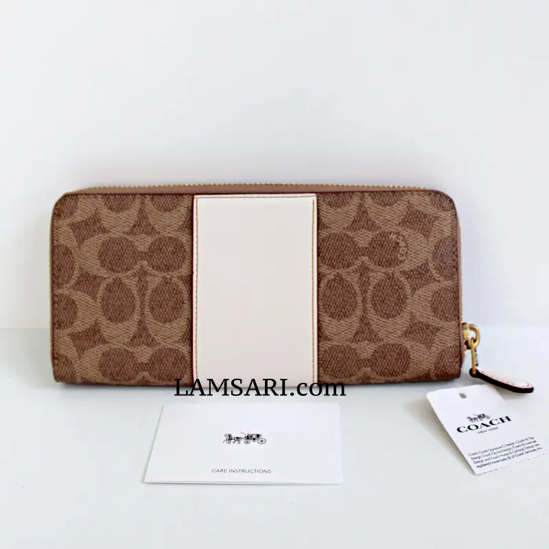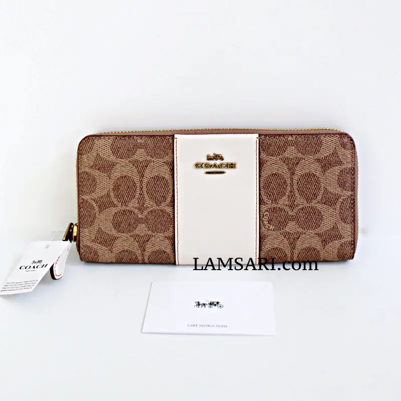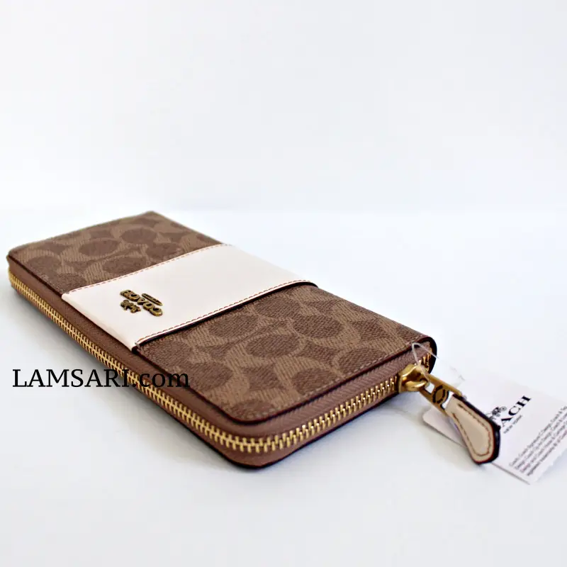 The Signature Coated Canvas Colorblock Leather Slim Accordion Zip Wallet features: