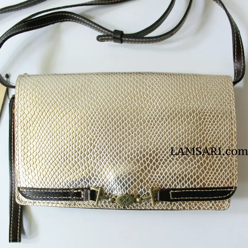 Patricia Nash Gold Metallic Python Apricale Crossbody Wristlet Clutch Bag
